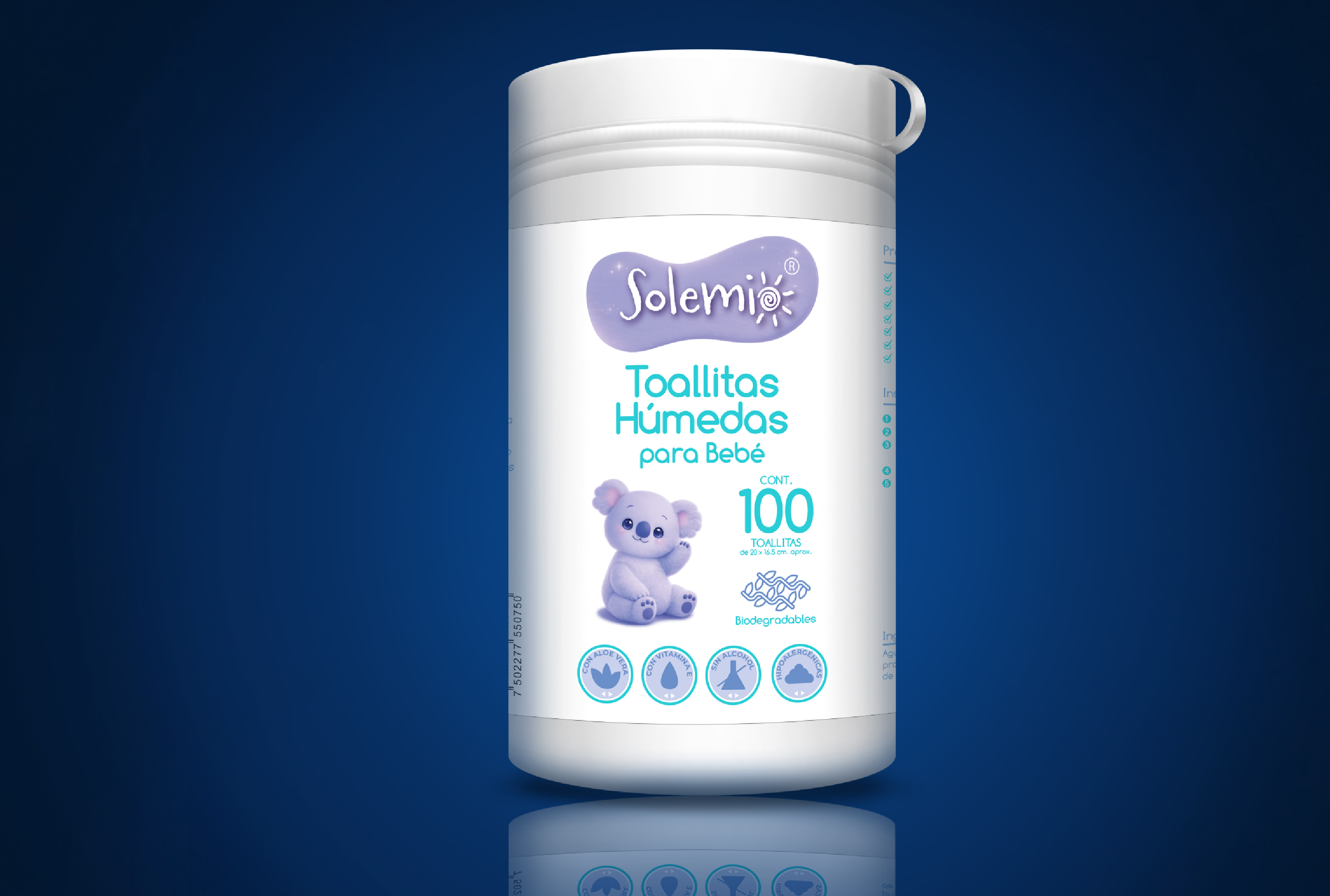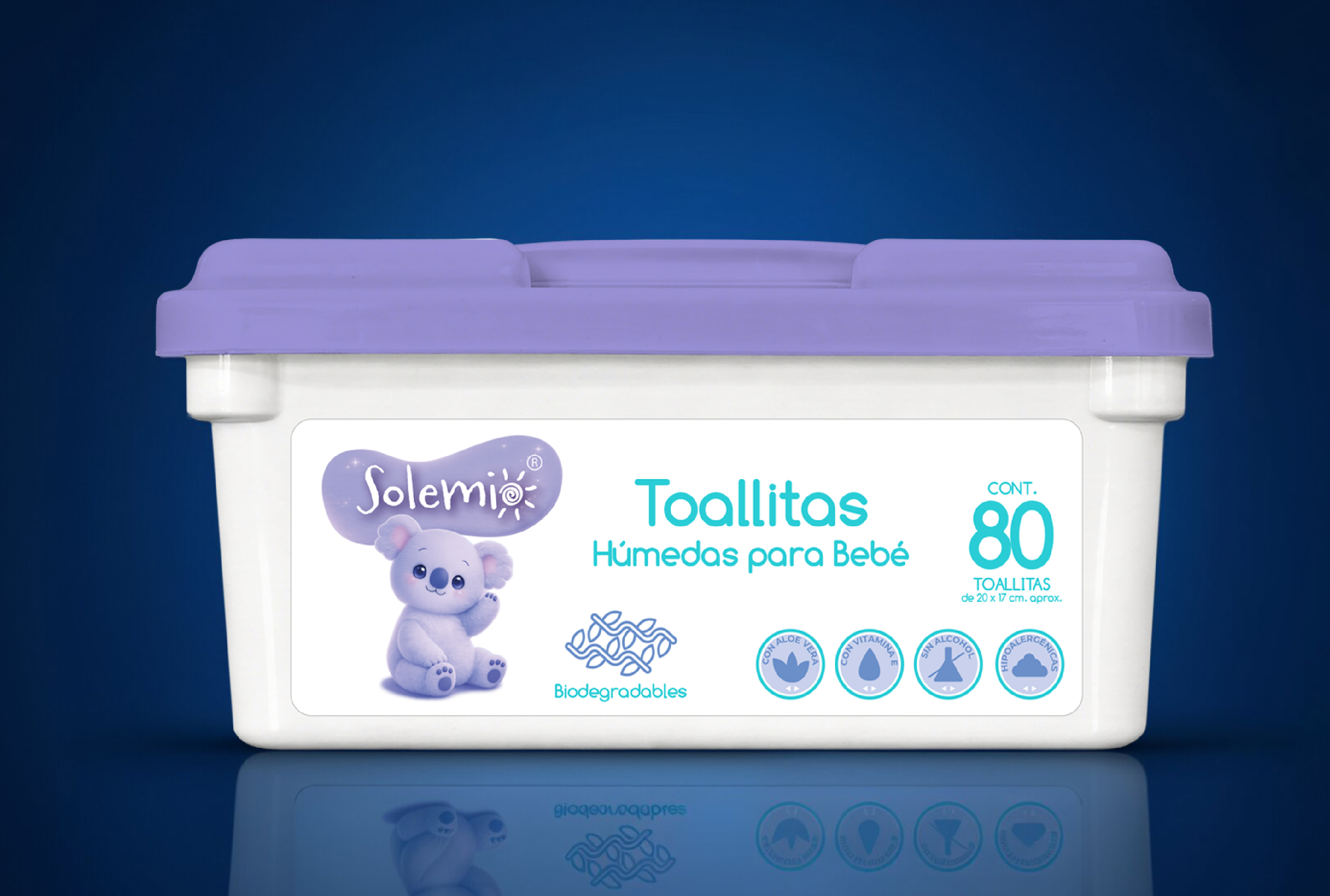 Las toallitas húmedas para bebé Solemio han sido desarrolladas para el uso diario en pieles sensibles. Su fórmula hipoalergénica, libre de alcohol, enriquecida con vitamina E y aloe vera, limpia con suavidad y respeta la barrera natural de la piel.